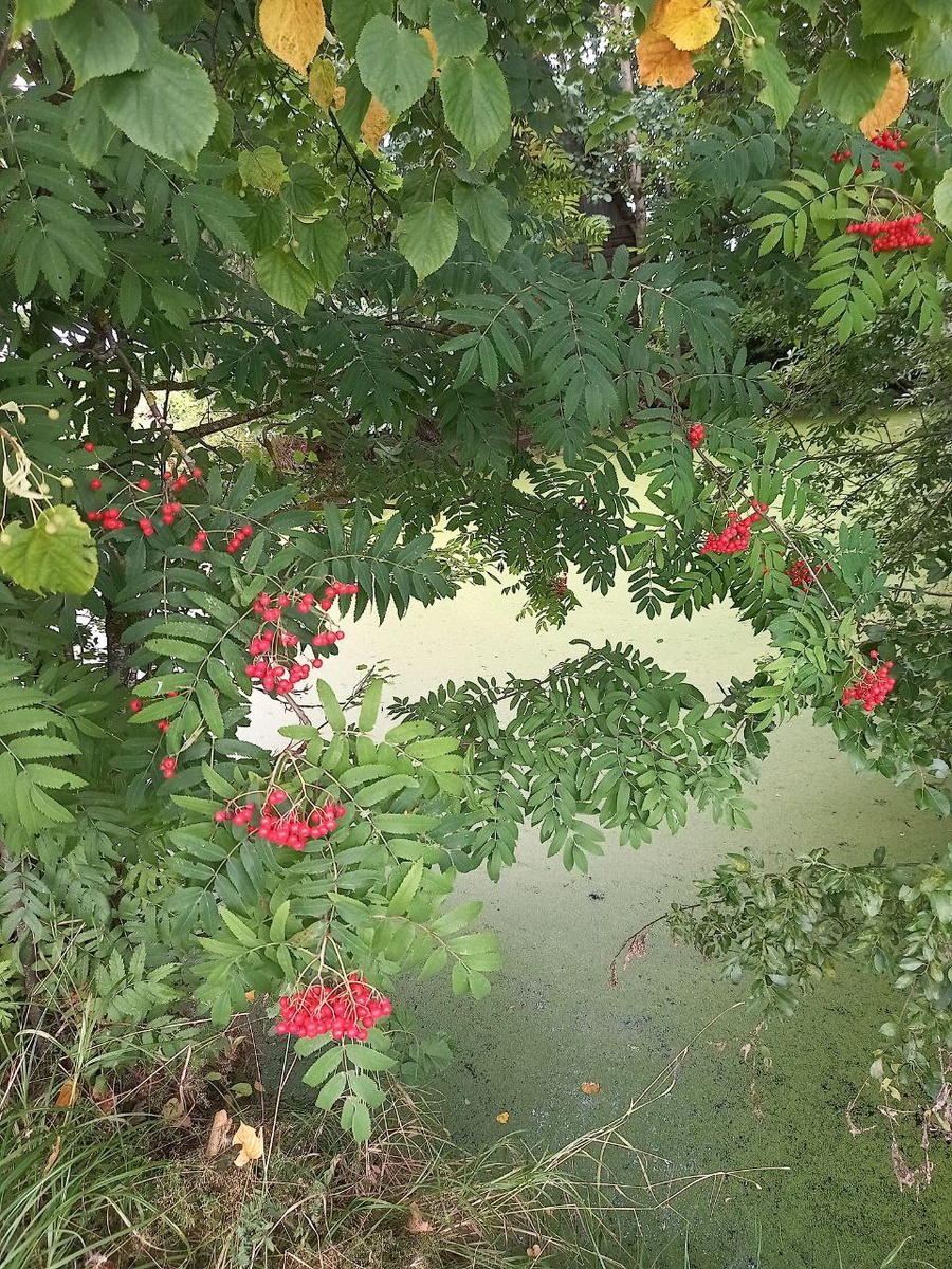 Описание: "Данная фотография сделана в селе Чуровское Шекснинского муниципального округа. Это моя малая родина. Посреди села есть пруд в окружении рябинок, лип и ив. Когда я