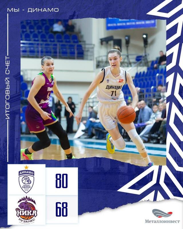 Вечером 23 февраля баскетболистки «Динамо» (Курск) дома одержали победу над «Никой-Лузалес» из Сыктывкара со счетом 80:68 (25:18, 20:20, 19:20, 16:10). Динамовки начали по-хозяйски — с 8:0, благодаря броскам Нины Глонти, Вероники Сазоновой и Ольги Фролкиной. Первый период остался за Курском — 25:18. После этого еще две четверти шла равная борьба. «Плюс 7» было к большому перерыву — 45:38, а к исходу получаса «Ника» отыграла одно очко — 64:58. Развязка должна была наступить в последней 10-минутке. Девушки из Сыктывкара рывком 0:10 сумели выйти вперед — 64:68. Однако после этого забивали только подопечные Александра Ковалева, выдав сухую серию 16:0, которая включила две трешки от Дарьи Репниковой и Глонти. Ударная пятерка «Динамо» сегодня: Фролкина – 15 очков, Киара Линскенс – 14, Глонти – 13, Марина Голдырева – 11, Дарья Репникова – 10 очков. Сергей Яшин, фото БК «Динамо» (Курск) Постоянный адрес новости на сайте «Друг для друга» ~ https://dddkursk.ru/lenta/2026/02/23/126070/. Новости К