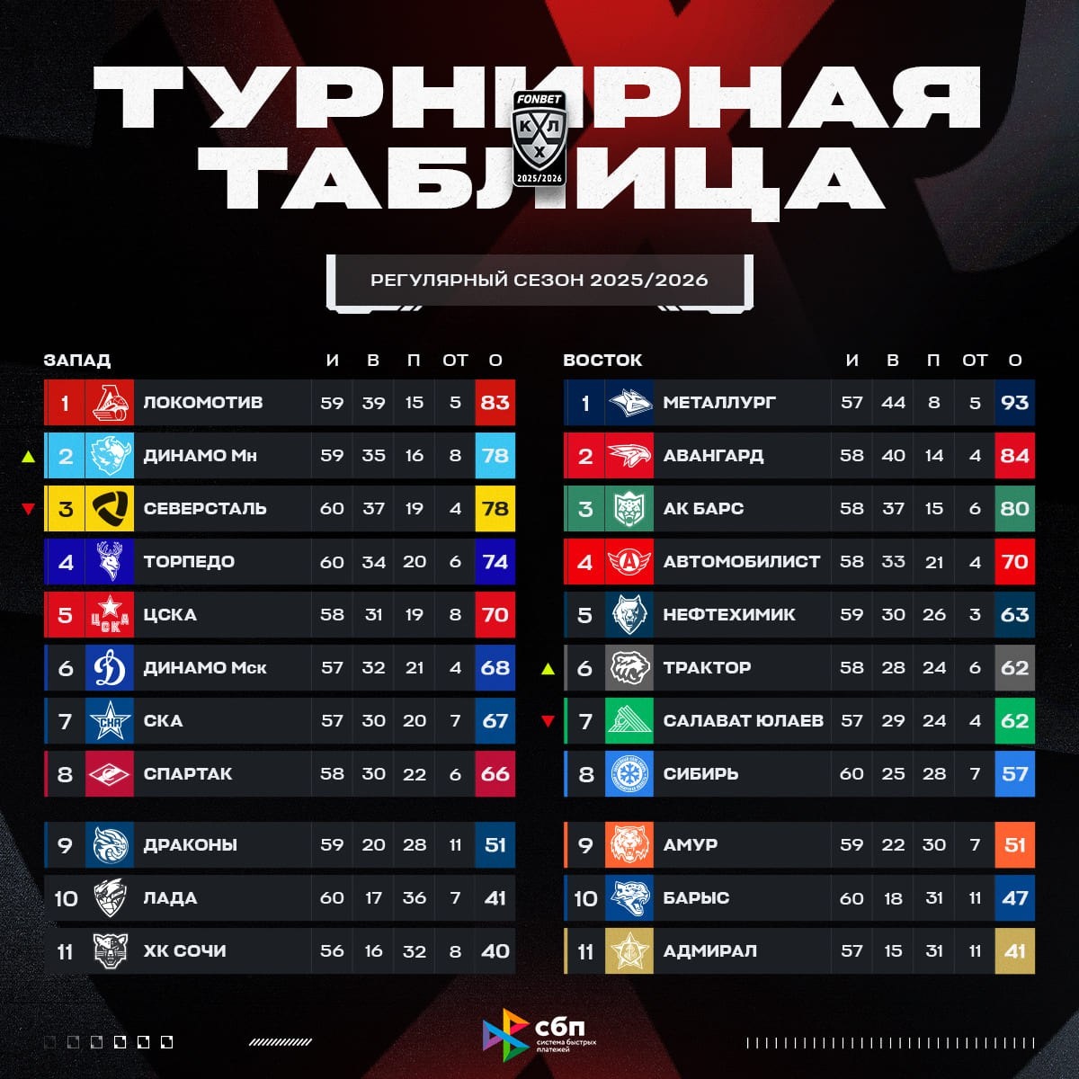Минск снова второй, Челябинск потеснил Уфу на седьмую строчку