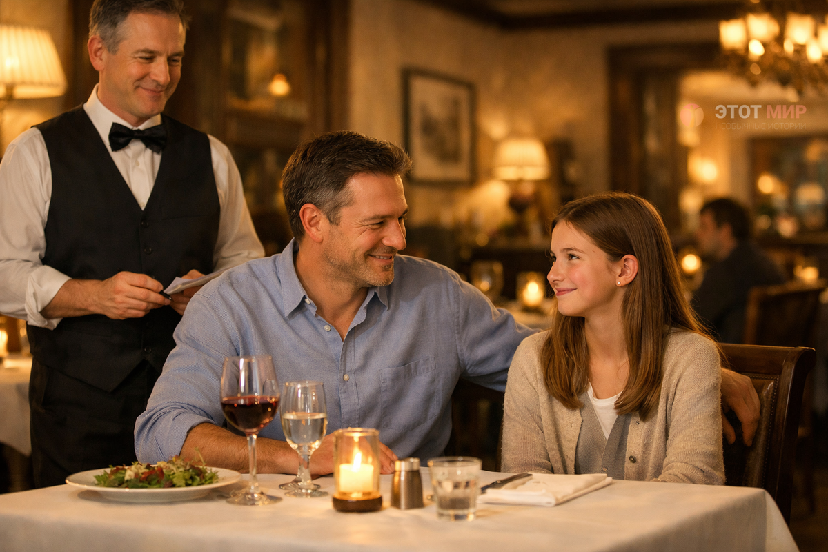 Официант заметил, как Сергей смущённо отвёл взгляд, и в этот момент понял всё. Денег хватало только на одно блюдо, и отец готов был весь вечер просидеть с бокалом воды, лишь бы дочь почувствовала себя счастливой.