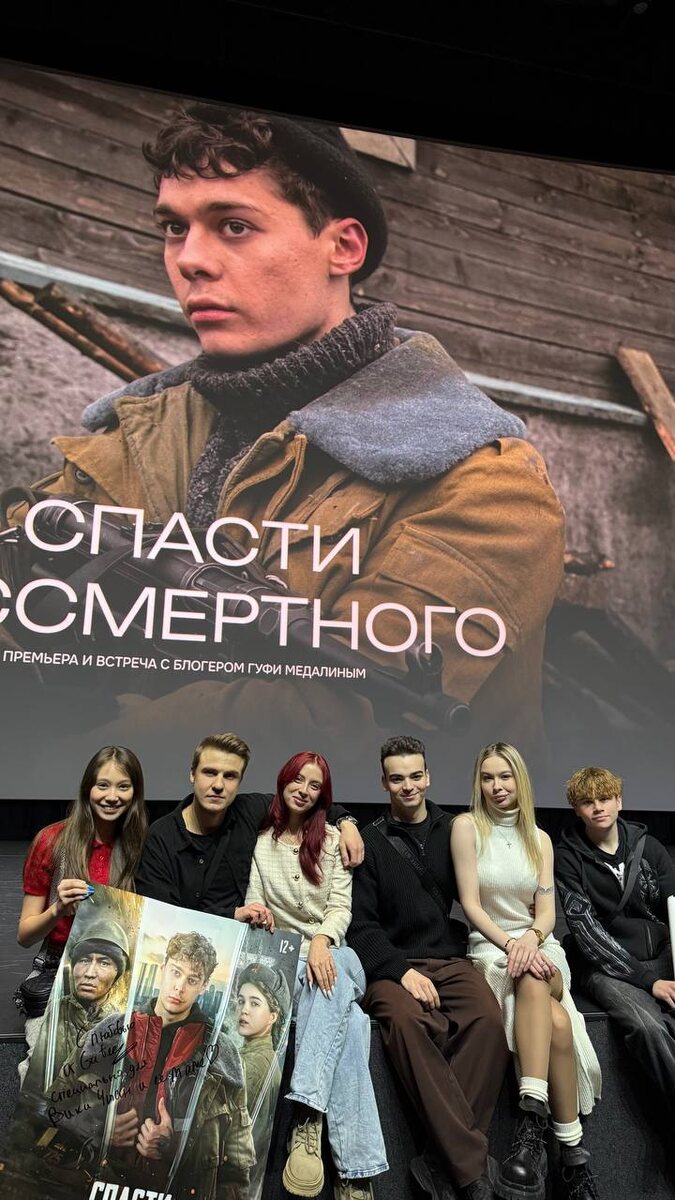 22 февраля я сходила на предпремьерный показ фильма «Спасти бессмертного», в котором в главной роли снялся блогер-легенда и мой друг — Гуфи Медаллин 😎🔥 Кстати, с 26 февраля фильм выходит на большие экраны, и каждый из вас может посмотреть его в кинотеатре 🍿🎟️