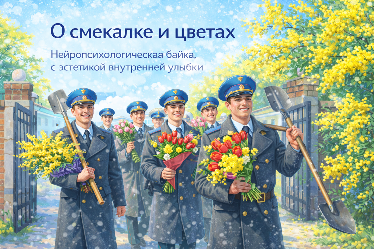 Нейропсихологическая байка с эстетикой внутренней улыбки Это было в конце девяностых. Хотя такие истории не принадлежат времени. Они принадлежат состоянию, когда молодость ещё не знает, что ей что-то нельзя, а сердце уже знает, что без цветов никак. Высшее военное училище. Курсанты. Люди формы, строя, шага, команды. Но если смотреть чуть глубже, курсант это гусар. Просто в другой эпохе. Без коня, но с тем же внутренним кодом. Гусар не приходит без цветов. Это не обсуждается. Это не про правило. Это про достоинство. А на календаре 8 марта. Увольнение только после обеда. А девушки ждут сейчас. В этом ожидании есть особая тишина, которая сильнее любого приказа. Цветы нужны сегодня. Не потом. Не по разрешению. А по внутреннему закону, который не прописан ни в одном уставе, но живёт в каждом из них. Самоволка витает в воздухе, как риск и как соблазн. Но курсант не вор. Он не крадётся. Он выходит. И тут рождается решение, такое простое, что даже красиво. Если идти, то всем. Если идти, то стр