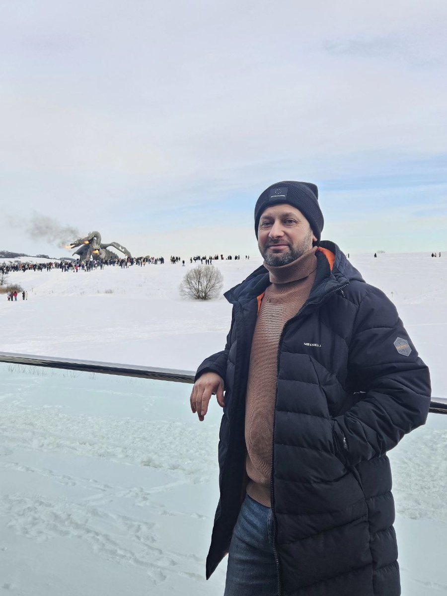 По программе мероприятий на 22 февраля 2026 года исполинский персонаж славянской мифологии должен был изрыгать пламя один раз и только в 18.30, но когда мы зашли в парк, Горыныч вовсю палил округу: