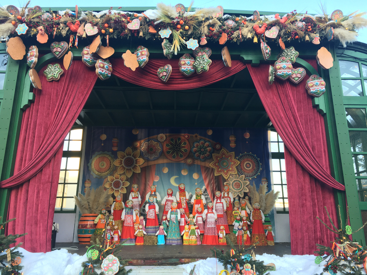 Главная фестивальная столичная площадка, расположенная на Тверской площади, припорошенной ещё снегом в конце зимы, щедрой на снегопады, превратилась в ярмарку с яркими деревянными лошадками, расписными игрушечными пряниками и нарядными соломенными куклами.