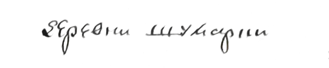 Оные Антон и женою отданы по мировой записи прапорщице Арине Алексеевой дочери Пыхасевой? 1779 году. Переведены из вотчины господина моего Лаишевской округи из селца Дертулю? Чемадурово тож Сергиевской округи в деревню Шумарку.