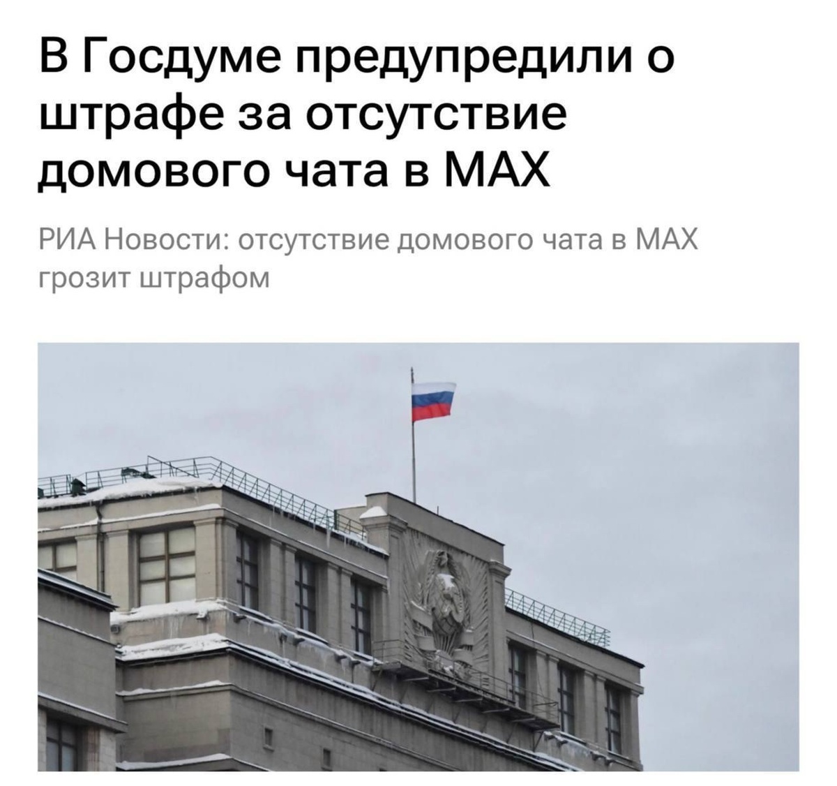 Штраф до 300 тысяч рублей за отсутствие «домового чата» МАХ, предупреждает Госдума