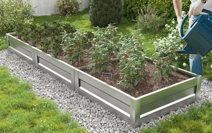 Металлические конструкции набирают популярность благодаря долговечности. Чаще всего используют оцинкованную сталь с полимерным покрытием. Такие грядки легко монтируются, не боятся влаги и вредителей, а разнообразие цветов позволяет вписать огород в любой ландшафтный дизайн. Металл не впитывает грязь и легко моется. Существенный минус — сильный нагрев под солнцем. Почва у краев металлической грядки может перегреваться и быстрее высыхать, поэтому в жарком климате требуется более частый полив. Кроме того, острые края необработанного металла могут быть травмоопасны, хотя у заводских моделей эта проблема решена загибом кромки.