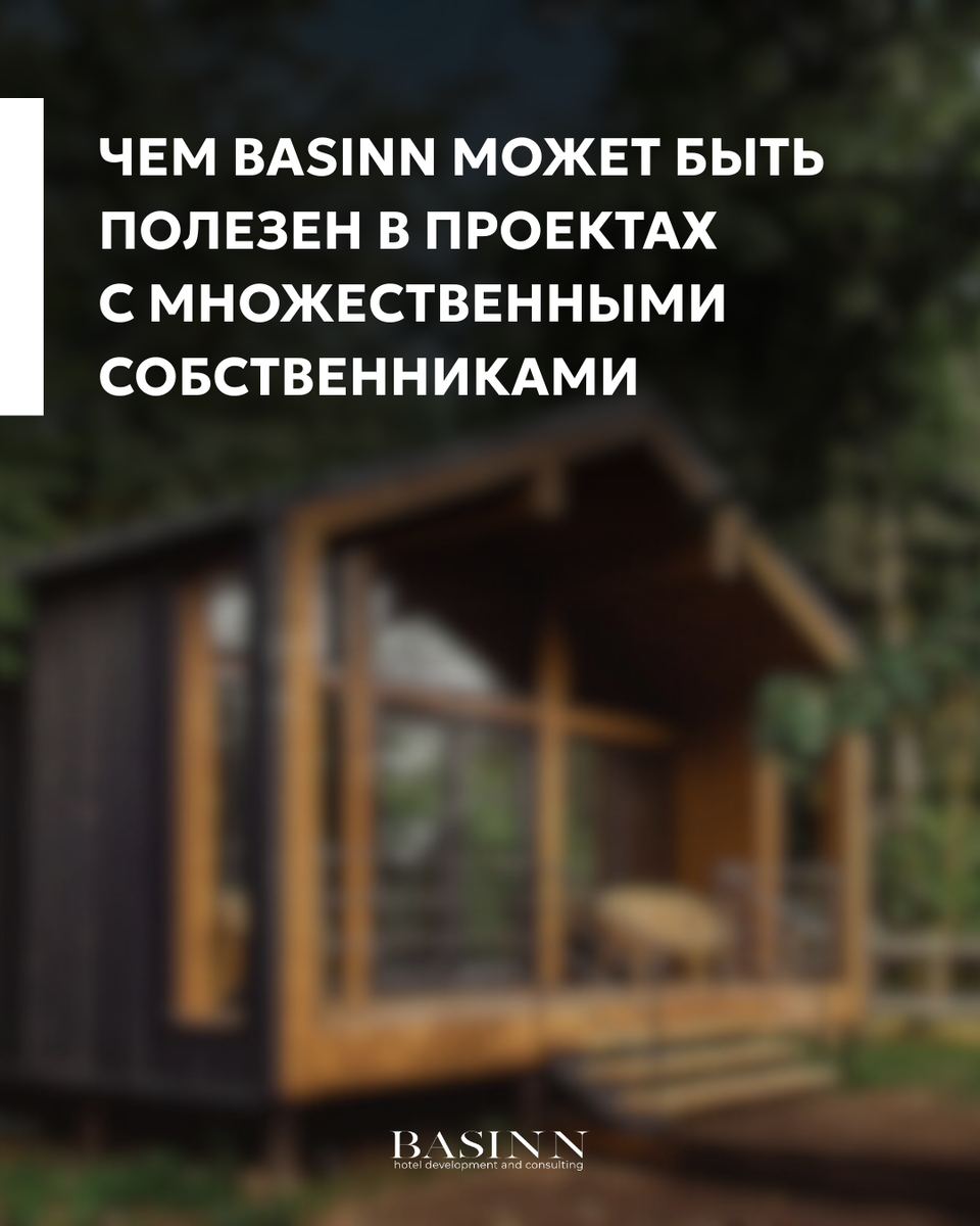 ЧЕМ BASINN МОЖЕТ БЫТЬ ПОЛЕЗЕН В ПРОЕКТАХ С МНОЖЕСТВЕННЫМИ СОБСТВЕННИКАМИ В отелях с множественными собственниками всё связано: продукт, спрос, инфраструктура, модель управления, юридическая оболочка и финансирование. Ошибка в одном месте легко превращает проект в «отель‑монстр» или кондоминиум‑хаос вместо живого отеля. В BASINN мы как раз закрываем весь этот «контур» целиком: 🔹 Разрабатываем бизнес‑концепцию под конкретную локацию: формат (городской, курортный, загородный, апарты/гибрид), целевая аудитория, сценарии использования, состав юнитов и инфраструктуры, чтобы номерной фонд соответствовал реальному спросу, а не только плану продаж. 🔹 Считаем финансовую модель: загрузка, средний чек, структура расходов, фонд замещения, сценарии доходности (а не только «красивая цифра в презентации»), в том числе под проекты с множественными собственниками. 🔹 Прорабатываем модель управления: кто контрагент для управляющей компании (единое юрлицо/девелопер, а не 200 инвесторов),
