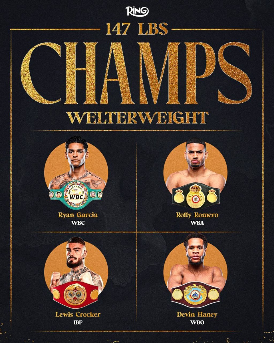 4 титула 4 чемпиона и у каждого свой, в сети спорят сможет ли Гарсия стать абсолютом учитывая что он уже побеждал того же Дэвида Хейни но не