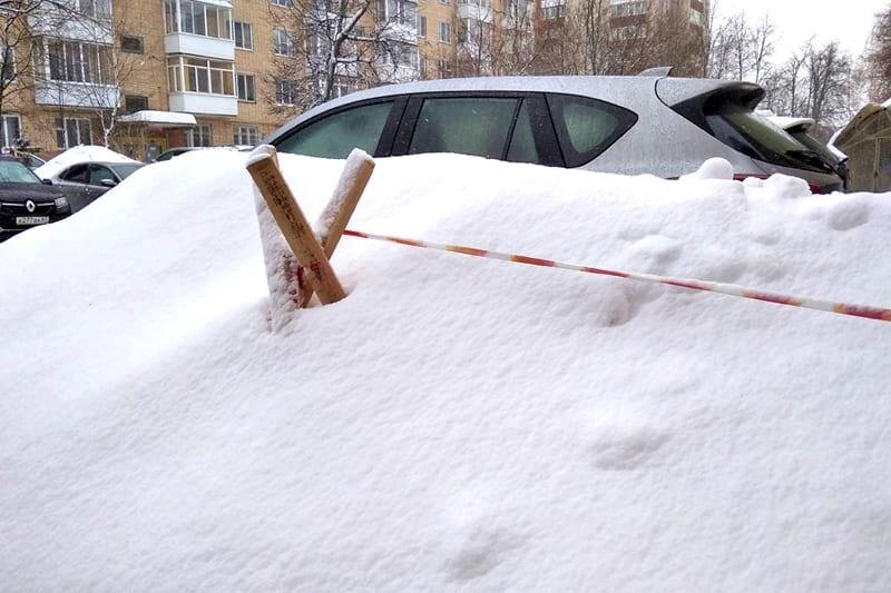 В Смоленске ограждающие элементы и припаркованный автомобиль ждет демонтаж