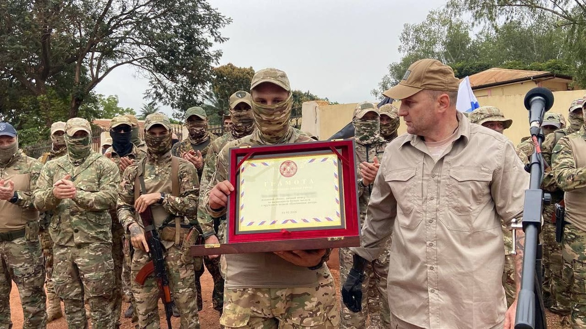 На церемонии присутствовали бойцы ЧВК «Вагнер», Дмитрий Подольский, представители посольства и Минобороны России, а также представители властей ЦАР. В ходе церемонии один из бойцов «оркестра» был удостоен платиновой звезды Героя ЧВК - высшей награды в иерархии компании. Награда была вручена за выполнение задач в зоне СВО в 2022 году. Он стал 56 человеком в ЧВК, кто был удостоен данной награды.