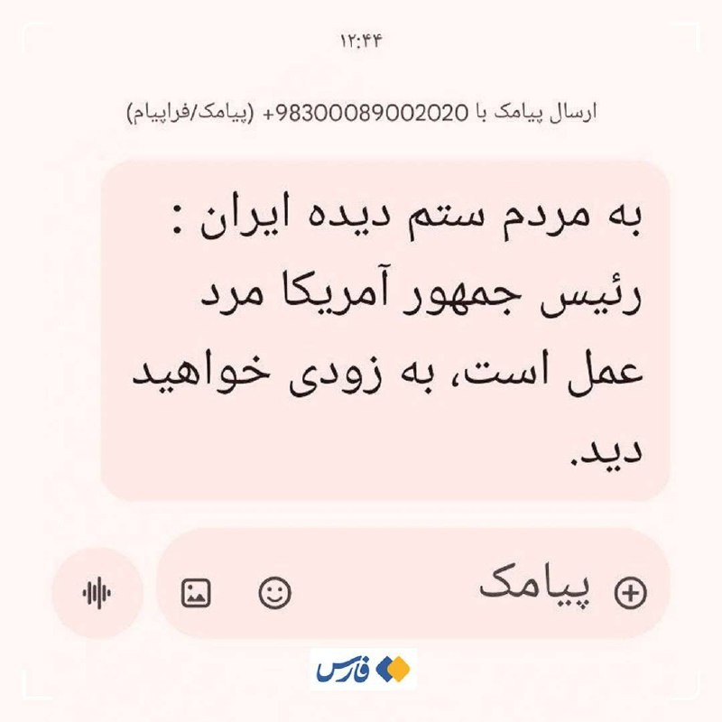 🇮🇷 Хакеры разослали иранцам СМС с текстом: «угнетенным иранцам: президент сша человек слова, скоро вы это увидите».