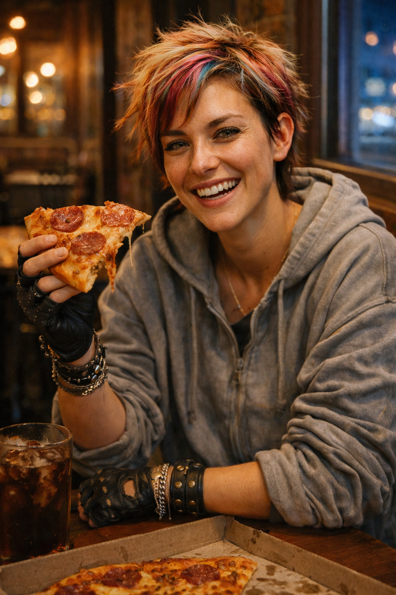 Энергия и «совесть» NexaVision. Тестировщик по профессии, пацанка по жизни. Она не просто ищет баги — она проверяет реальность на прочность, и горе тому коду, который не выдержал её натиска. Хотя... не только коду. Возраст: 27 лет Внешность: Среднего роста, атлетичного и поджарого телосложения. Джен выглядит как человек, который в любую секунду готов сорваться с места. У неё резкие, «хищные» черты лица: высокие скулы, открытый высокий лоб и пронзительный взгляд зелёно-карих глаз. Кажется, что она постоянно сканирует пространство, замечая малейшие несовершенства. На носу и щеках — россыпь веснушек, а кожа тронута загаром, как у тех, кто не вылезает с открытых площадок или из гаражей. Стрижка короткая, «под мальчика»; волосы красит в цвет, какой захочется, иногда в несколько сразу. На голове обычно творческий беспорядок, будто она только что сняла шлем или просто привычно взлохматила их рукой. Одежда: Стиль «уличный практик». В офисе её редко увидишь без приталенной кожаной куртки, котор