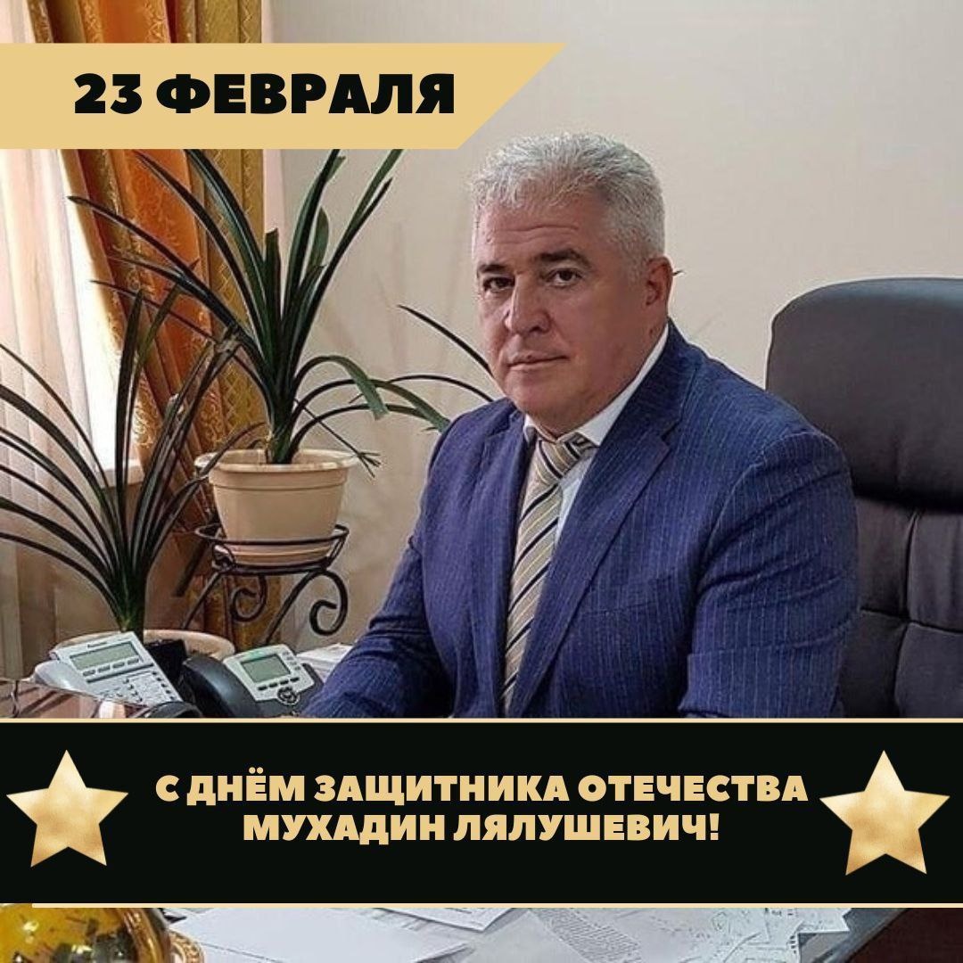 ! Спешу сердечно поздравить Вас с Днем защитника Отечества, с 23 февраля! Желаю Вам доброго здоровья, счастья и благополучия, бодрости духа , неиссякаемой энергии и оптимизма. И , конечно же , отдельно хочется поздравить ведущего актёра Кабардинского госдрамтеатра им Али Шогенцукова и по совместительству министра культуры КБР Мухадина с днем защитников Отечества. Уважаемый Мухадин Лялушевич, хочу пожелать вам в этот праздничный день всегда оставаться такими же надежными, . всегда таким же мужественным, благородным, добрым, успешным, преданным своей работе, своей Республике, своей стране смелым и отважными человеком ! На посту министра вы многое прошли, хочу чтобы и в дальнейшем вы с упорством шли к поставленным целям! Огромного здоровья, благополучия, успехов во всех начинаниях в работе и на сцене. Пусть всегда будет прекрасное и солнечное настроение! Всех благ Вам и всего самого наилучшего! С уважением Oksana Mukhamedovna Ged Админ паблика КУЛЬТУРА.КБР