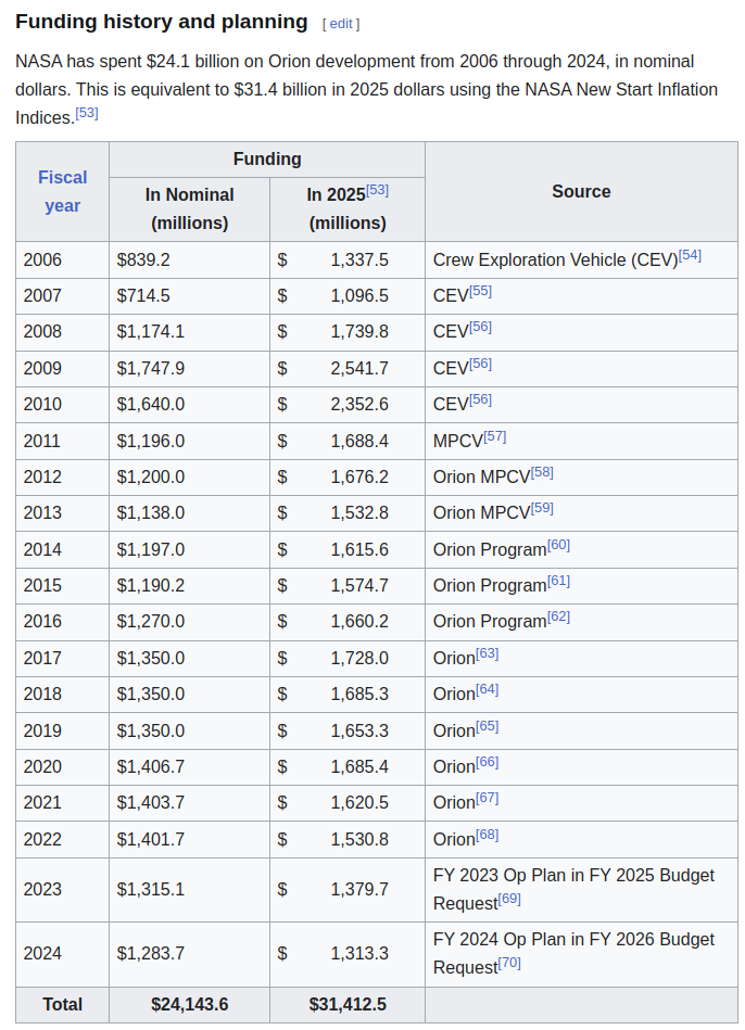 Согласно Википедии, на программу Orion уже потрачено свыше $30 млрд.