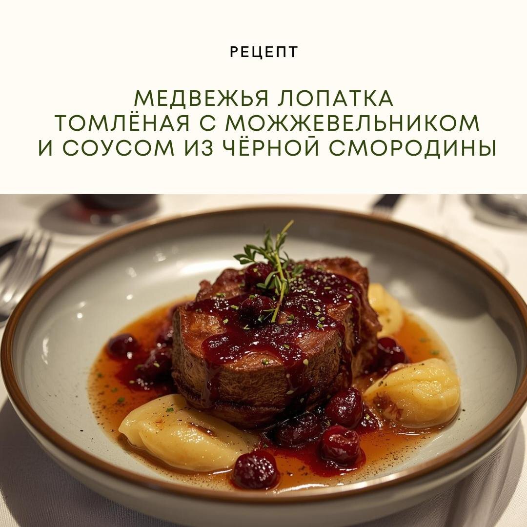 Это про глубину вкуса, уважение к продукту и точную работу с текстурой. Медвежья лопатка требует времени, правильного маринада и медленного томления. Зато в ответ она раскрывается мягкостью, насыщенным ароматом можжевельника и благородной плотностью мяса. В сочетании с пюре из корня сельдерея и соусом из чёрной смородины получается блюдо ресторанного уровня — северное, сильное, сбалансированное. Сохраняйте рецепт, если хотите приготовить не просто ужин, а гастрономическое впечатление. 💻Наш сайт: SIBIFOOD.RU 🛒Самовывоз Москва ул. Булатниковская,14 ☎️ +74951277582 🎁 Подарочные наборы