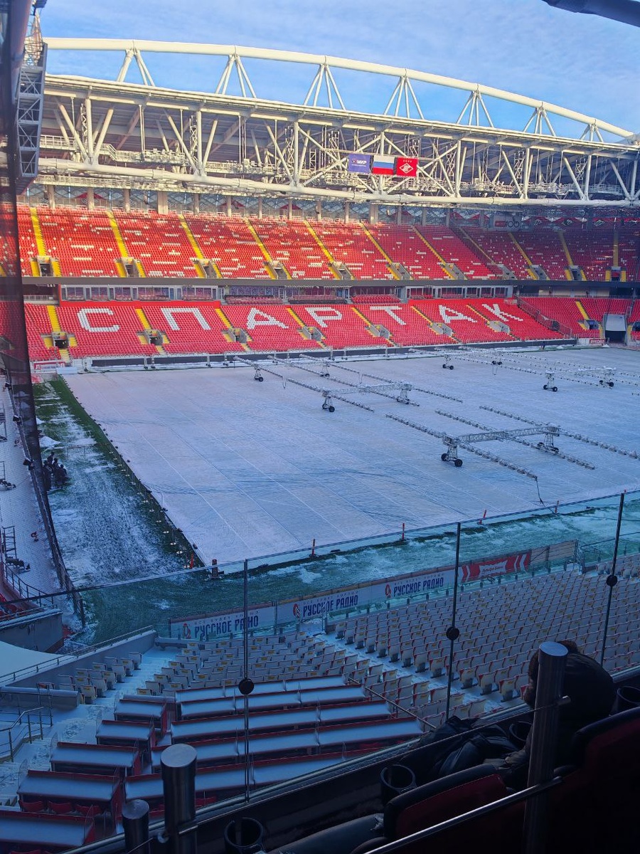 Экскурсия на Спартак арену исправило этот пробел. Сама газонная трава - это 80% травы и 20% искусственной травы, которая вплетается в корневую систему газона. Для защиты зимой поле покрывают спец покрытием (очень похож на геотекстиль), а сверху включают инфракрасную систему подогрева. Это не даёт воде превратиться в лёд и позволяет ей стечь в дренаж. Постоянная температура зимой в районе газона около 16 градусов - поле готово к игре даже зимой. Оказывается и само поле не идеально горизонтальное, а с видимыми кочками, что позволяет воде долго не задерживаться. Но по словам самих футболистов при беге кочки не ощущаются. Очень впечатлил Зал Славы Спартака. Исторические артефакты, видео, кубки, звуковое сопровождение и многое другое (фото в комментариях). Спартак-Чемпион! 🏆 21.02.2026 Спартак арена, Москва