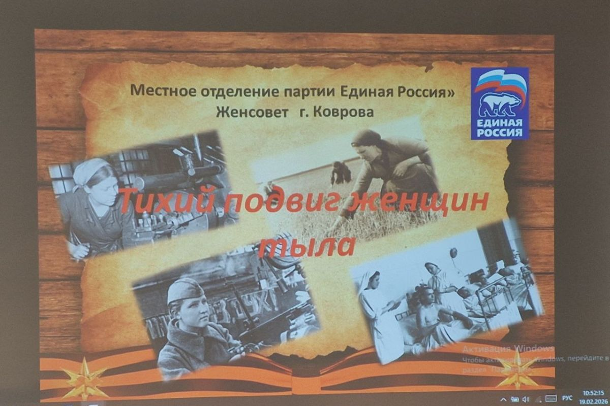 В рамках федерального партийного проекта «Женское движение Единой России» в преддверии праздника 23 февраля состоялось мероприятие под названием «Тихий подвиг женщин тыла». Она рассказывает о женщинах защитницах Отечества. Они не воевали, но сделали для своей страны не меньше, чем бойцы передовой.