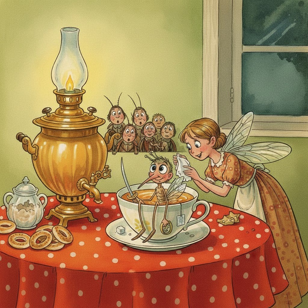 Вы знаете эту историю. Ту самую, про Муху-Цокотуху. Про её находку, про чаепитие с букашками, про злодея Паука и про трусливых тараканов, которые по щелям попрятались. Но есть в той истории одна тайна, одна строка, которую мы обычно проглатываем, не задумываясь: «Вдруг откуда-то летит Маленький Комарик...»