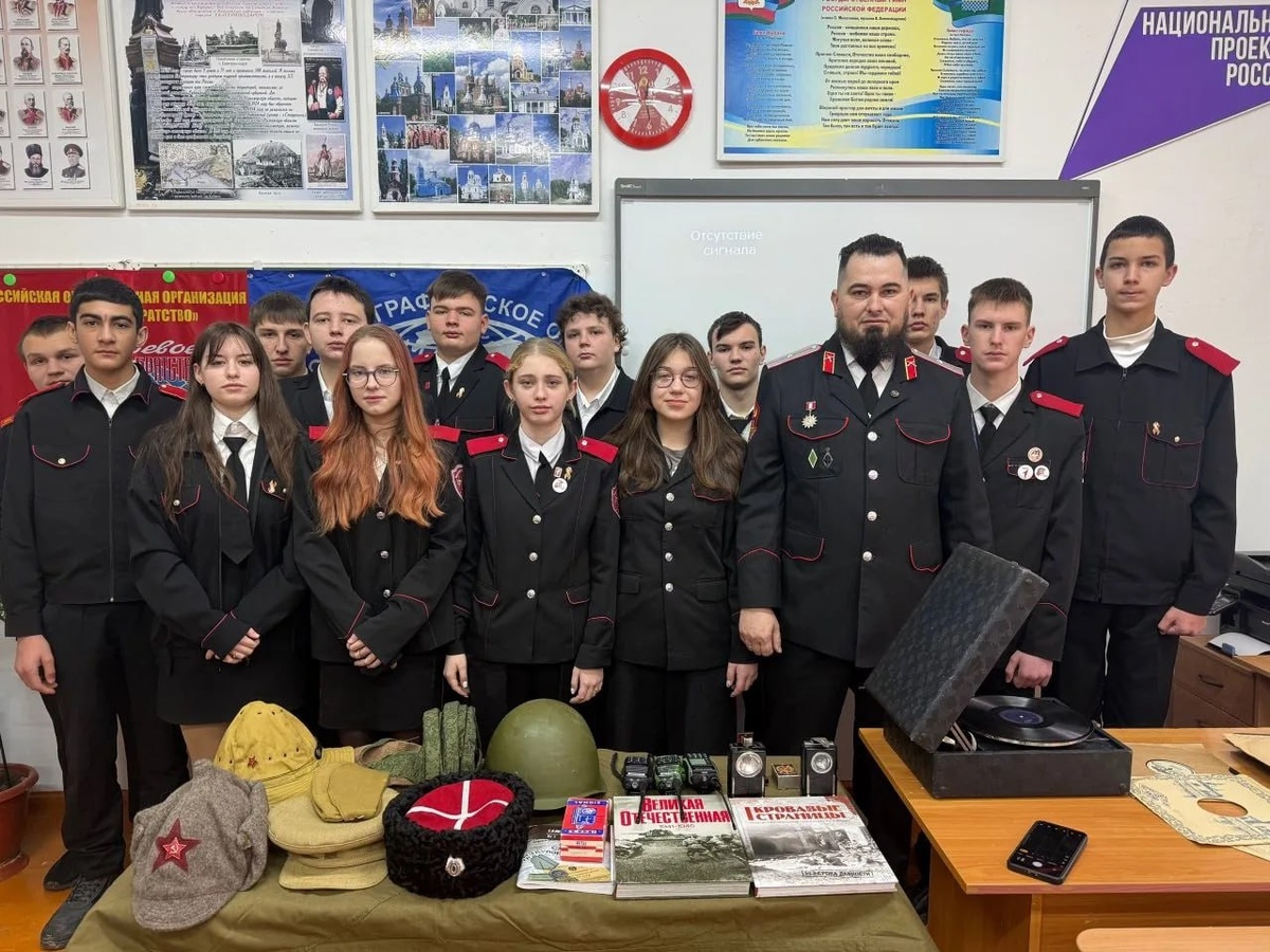 ⭐️ В канун Дня защитника Отечества в казачьей ООШ № 7 посёлка Степного Славянского района прошел урок мужества для учащихся 8 и 9 классов