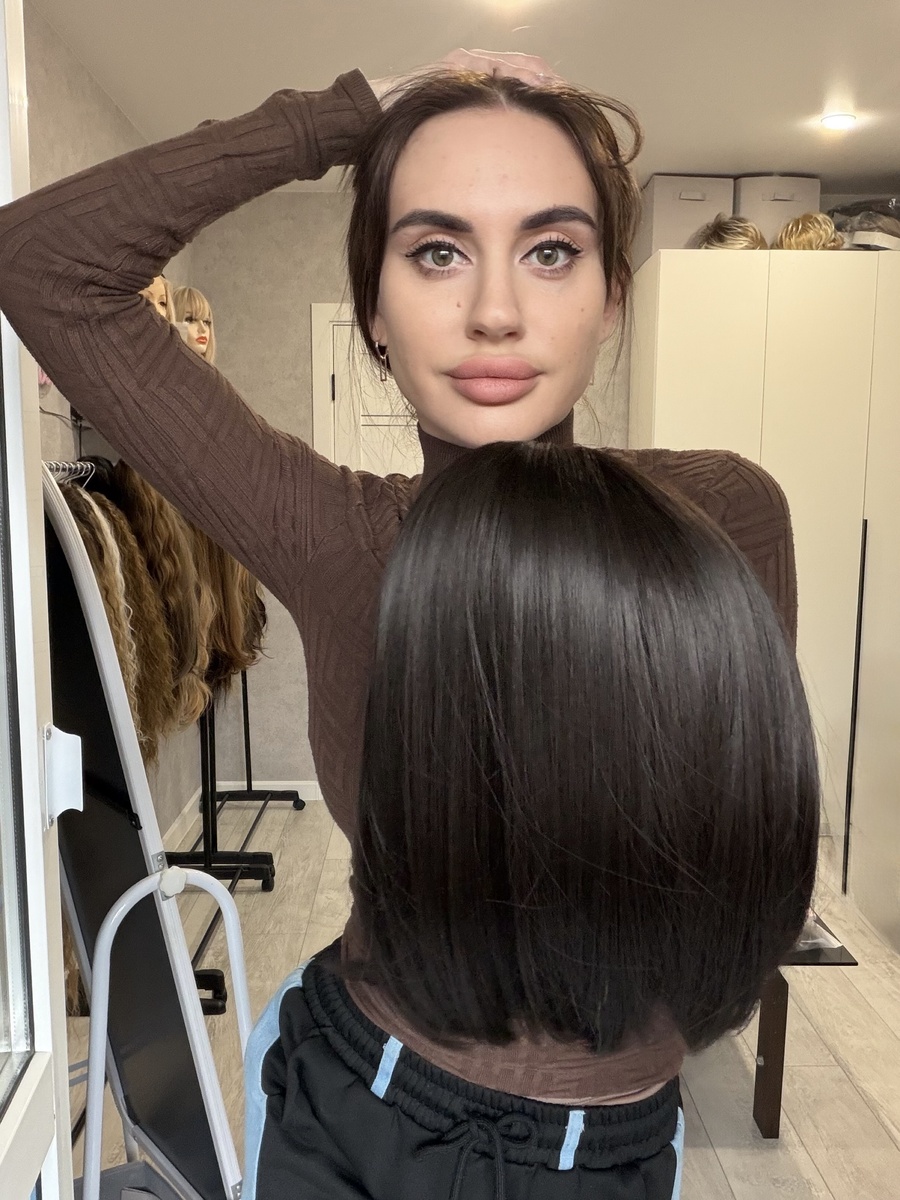 Классический карэ с имитацией кожи головы и имитацией кожи головы . Есть длинная чёлка ( можно стричь прямо короче )