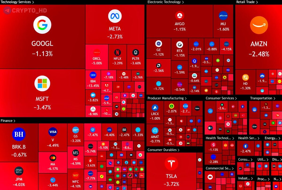 📉 Фондовый рынок США сегодня потерял $700,000,000,000