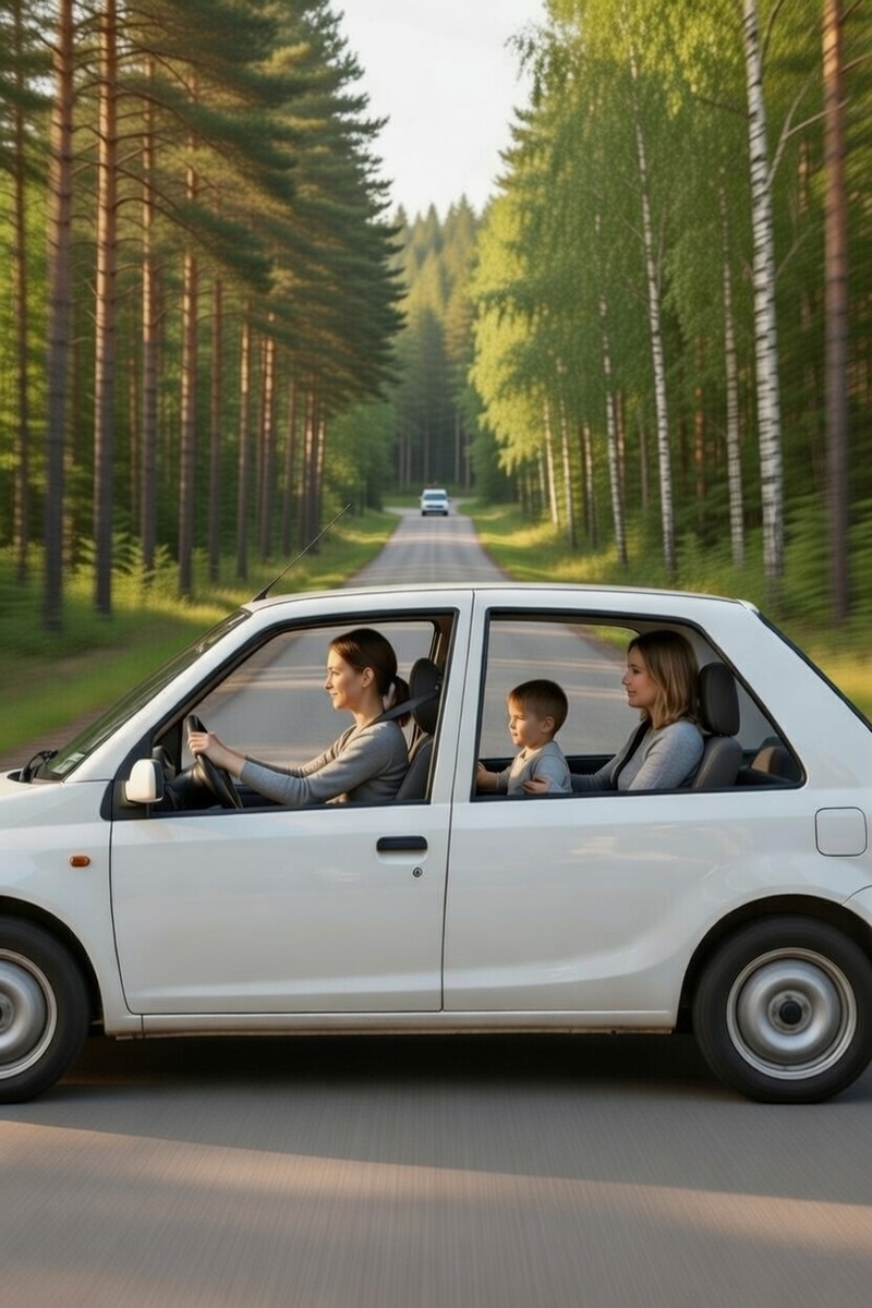 На улице их ждал старый «Форд» — двигатель уже работал, выдыхая пар в морозный воздух. Алёна уложила Серёжу на заднее сиденье, укрыла одеялом. Настя села за руль.