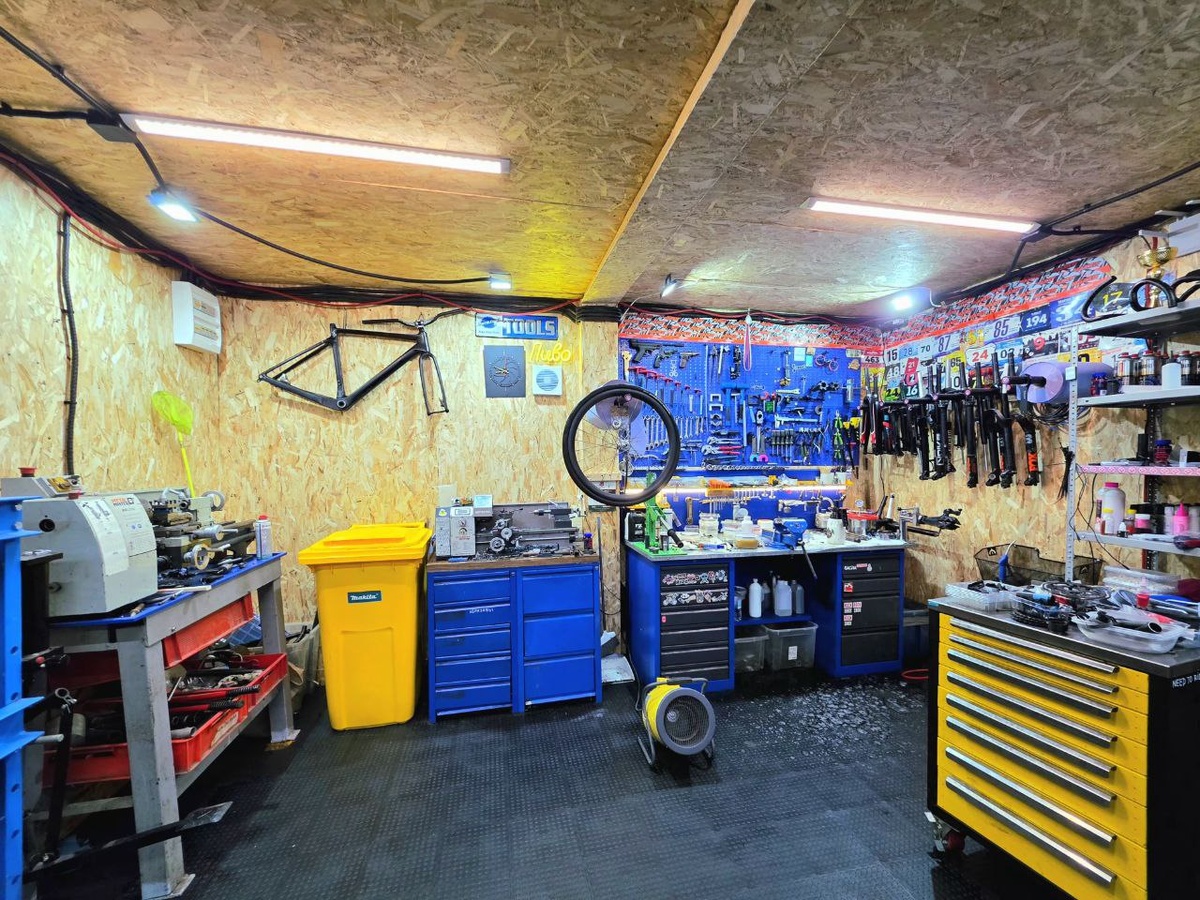 данное недоразумение. Тут у нас два верстака, один мой, один Антона, два токарника, большой и маленький, две стойки производства Саши из Аксая, гидравлический пресс, вакуумная камера для дегазации жидкостей, ультразвуковая ванна, и много всяких других штучек. Антоха построил основные деревянные конструкции, а я наполнял их всякими крючочками, вешалками и т.д., старались сделать простенько, но со вкусом. Самое главное, что получилось такое место, из которого вообще уходить не хочется, сюда чаще стала прилететь Муза, а это значит, что мы с вами ещё немало прикольных решений увидим и изобретений)
