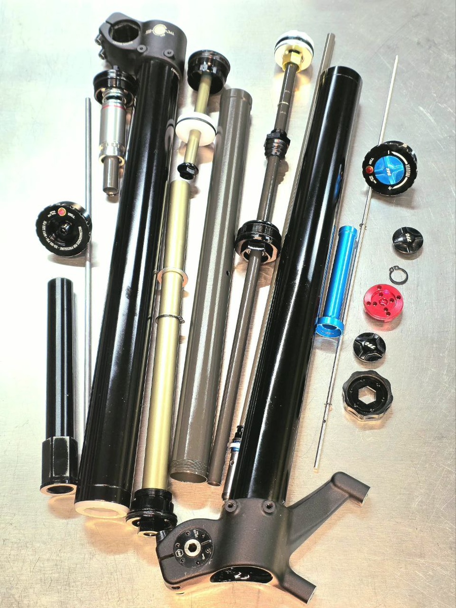 Сегодня посмотрим с вами на внутренности Manitou Dorado Pro, и попробуем разобраться, врёт поговорка или нет. Начнём с того, что всё, что вы видите в моих соцсетях – это голые факты на фотографиях и моя скромная их интерпретация, основанная на личном опыте, не стоит воспринимать написанное за истину в последней инстанции. Даже если речь идёт о компонентах, которые я лично обкатывал на гонках, моя писанина – это лишь субъективное мнение. А теперь к сабжу. Не буду перечислять маркетинговую информацию из интернета, это вы и без меня сами сможете нагуглить, перейду сразу к комплектации. На мой взгляд, Dorado – это некая компиляция интересных решений от разных производителей, например, у нас тут есть из коробки возможность изменять ход в пределах 20мм, перемещая колечко на штоке воздушной пружины, дополнительная воздушная камера IRT (Infinite Rate Tune), отвечающая за поддержку в середине хода, гидравлический антипробой, кнопки стравливания излишков воздуха из штанов и всё это в USD исп