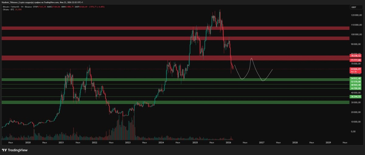 и биток заодно...в зону турбулентности зашли конечно. Напрашивается широкий диапазон с верхней границей 78-73 и нижней границей 54-52.