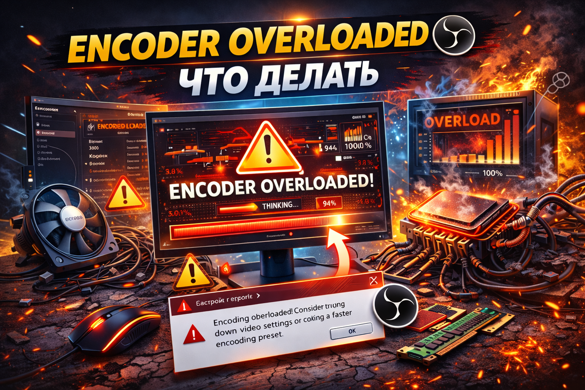 Ошибка Encoder Overloaded в OBS почти всегда связана с тем, что система не успевает кодировать поток в реальном времени.
