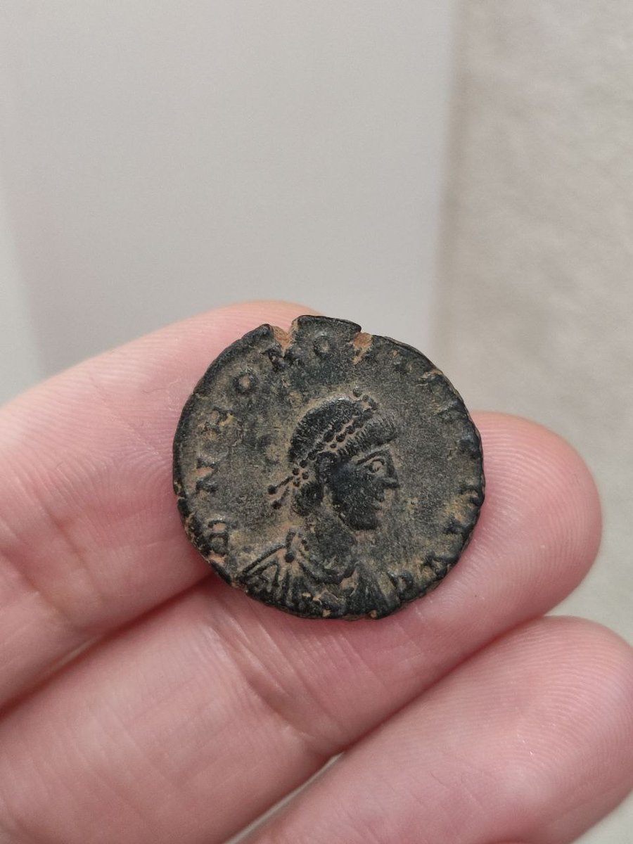Вот она лежит передо мной - бронзовая монета диаметром 21 миллиметр, весом 5,9 грамма. Невзрачная на первый взгляд монетка, отчеканенная в Никомедии больше шестнадцати веков назад. Казалось бы - ну монета и монета. Таких в земле Европы и Ближнего Востока миллионы. Но вот в чём фокус, друзья. Эта конкретная монета чеканилась всего 2 года - с 393 по 395-й. И именно в эти два года произошли события, которые навсегда изменили мир. Единая Римская империя перестала существовать. Язычество получило официальный запрет. Христианство окончательно победило. Началось то, что историки называют ранним Средневековьем. А на этом кусочке бронзы - портрет девятилетнего мальчика, который стал императором. И надпись "Слава римлян" - в момент, когда эта слава уже трещала по швам. Flavius Honorius Augustus - звучит грозно, правда? А на деле - младший сын Феодосия I, которого папа посадил императором Западной части империи, когда пацану было всего 9 лет. Представьте себе: третьеклассник на троне величайшего