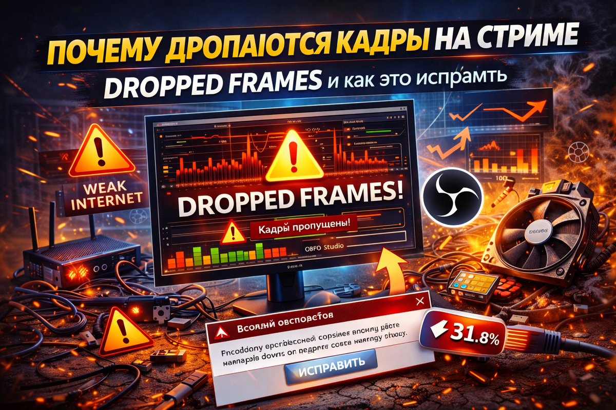 Dropped Frames (Network) в OBS — это почти всегда сигнал, что проблема в передаче потока по сети, а не в мощности ПК.