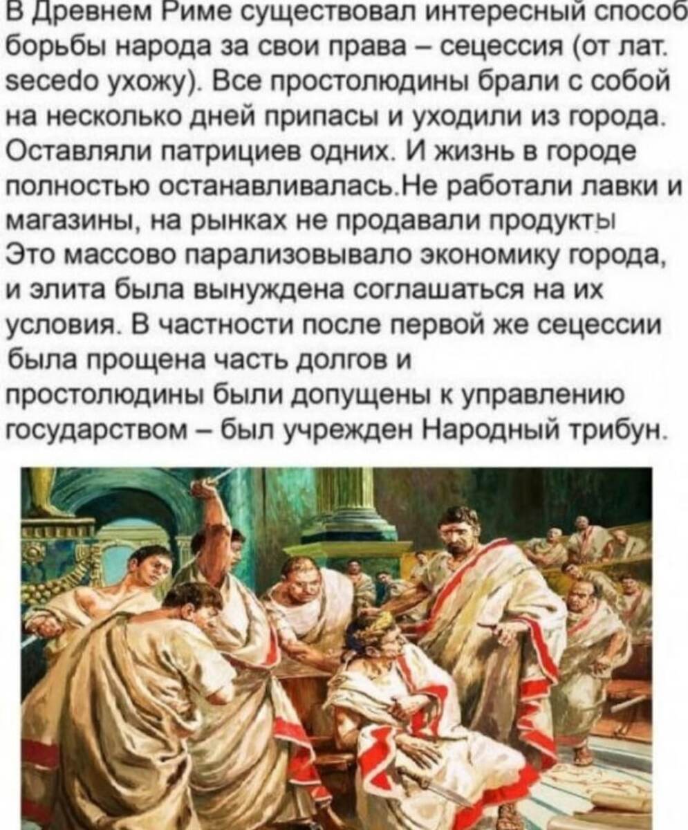 Мне, до того как я изучил тему сецессий, плебеи всегда казались сильно униженной категорией граждан Рима, а теперь я вижу, что в современном мире у простых граждан возможностей реализовать свои права стало намного меньше.