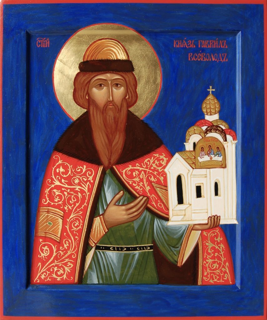 В Пскове Всеволод Мстиславович оказался после того, как был изгнан из Новгорода вечем. Причины его «выдворения» называют разные, например, непоследовательность политики – то вражда с Черниговом, то мир. Упрек в политическом непостоянстве, возможно, был и справедлив, но части новгородских знатных людей Всеволод был по-прежнему нужен; в 1137 году князя просили вернуться, однако, в 1138 году он внезапно умер. Уже через несколько десятилетий после кончины благоверного князя память о нем приобретает черты почитания, а новгородцам его правление представлялось уже «благоприятным»: в частности, вспоминалась его воинская защита города. Сведения о чудотворениях святого обычно доходят до нас от определенного периода его жизненного пути: иногда они случаются в период открытия мощей, а иногда – сразу после кончины святого. Из жития князя Гавриила мы узнаем, что различные чудеса происходили и во время открытия мощей, и в годину войн. Так, в 1363 году обрушился свод Троицкого собора, после чего был возведен новый. В Слове об обретении мощей святого князя рассказывается, что за день до обрушения свода князь-заступник явился во сне пономарю и повелел вынести из храма иконы, сосуды и книги, что и было сделано. В дальнейшем описаны исцеления по молитвам к святому князю от глазной, «студеной» и «огненной» болезней. На новой серебряной раке, изготовленной по указу императора Николая I, было изображено вынесение мощей святого Гавриила князя к месту битвы с полчищами Стефана Батория в 1581 году и явление Пресвятой Богородицы Дорофею.