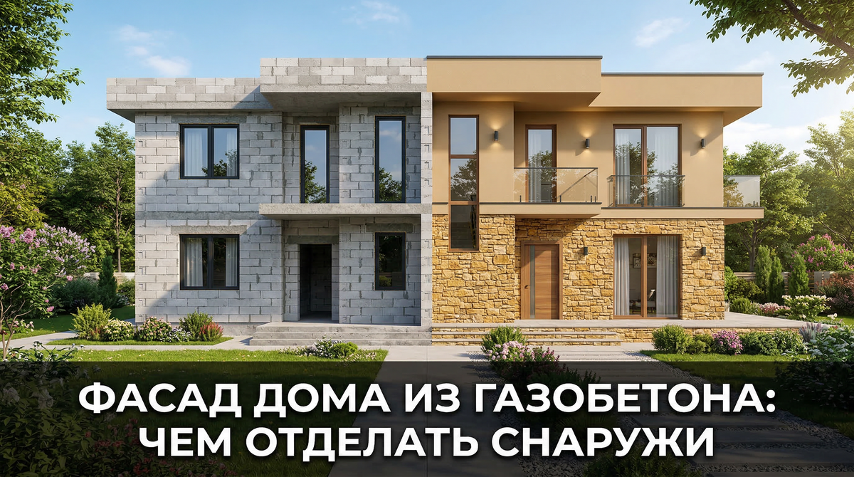 Газобетон — один из самых популярных стеновых материалов в частном строительстве. Он тёплый, лёгкий и доступный по цене. Но у газоблоков есть особенность: пористая структура активно впитывает влагу. Без защитной наружной отделки стены начнут разрушаться уже через 2–3 сезона. В этой статье разберём все варианты отделки фасада дома из газобетона — от бюджетной штукатурки до премиальной облицовки кирпичом — с реальными ценами на март 2026 года.