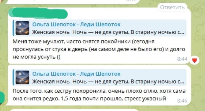Благодарю вас за откровенность 🤍 Когда после утраты близкого человека снятся сны, где появляются покойные или возникают такие ощущения, это чаще всего говорит не о чем-то страшном, а о том, что душа и сердце ещё проживают боль и тоску. Потеря родного человека — огромный стресс, и иногда во сне наше подсознание просто пытается прожить и отпустить эту боль. Считается, что иногда души близких могут приходить во сне, чтобы напомнить о себе или просто побыть рядом. Но чаще всего такие сны — это про нашу связь, память и любовь, которая остаётся. Чтобы немного успокоить душу перед сном, можно тихо прошептать такой шепоток: "Светлым силам себя вверяю, сон спокойный принимаю. Кто с миром — с миром приходит, кто с чуждым — мимо проходит. Мой дом и сон под защитой, во благо." Произнесите его спокойно 3 раза и постарайтесь представить вокруг себя мягкий свет. Часто после этого сон становится спокойнее. Его можно читать и тогда, когда мерещатся стуки. Ведь порой через такие знаки к нам может
