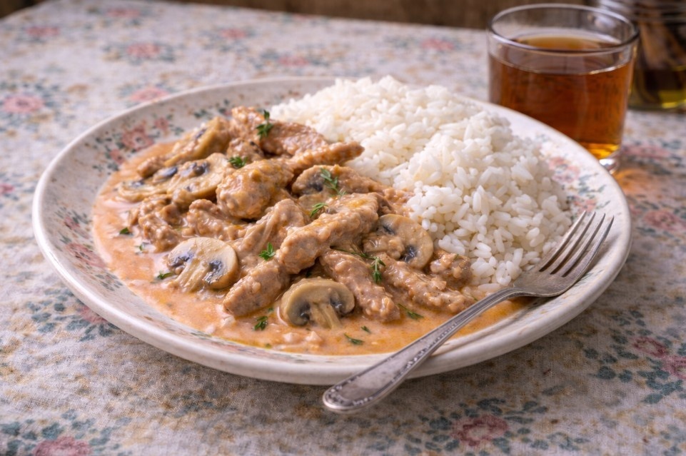 Бефстроганов из говядины — это, конечно, классика. Но мама моя, Людмила Ивановна, всегда готовила из свинины. Говорила: «Галочка, вырезка свиная мягче и сочнее, а подливка — как шёлк». Спорить с мамой я не решалась, да и незачем — она была права. Две луковицы нарезаю полукольцами, триста граммов грибов — пластинками. В глубокой сковороде обжариваю их вместе минут семь, пока лук не станет прозрачным. Шестьсот граммов вырезки режу брусочками и отправляю туда же, жарю ещё минут десять. А дальше начинается волшебство: столовая ложка горчицы, столько же томатной пасты, столовая ложка каперсов и листики с двух веточек тимьяна. Перемешиваю, вливаю полстакана воды и тушу под крышкой около тридцати минут, пока мясо не размягчится. Под конец добавляю две ложки сметаны и двести миллилитров сливок, довожу до кипения, солю-перчу и ещё пять минут на тихом огне. Подаю с рисом. Помню, Володя однажды тарелку хлебом дочиста вытер и сказал: «Вот это я понимаю — ужин».