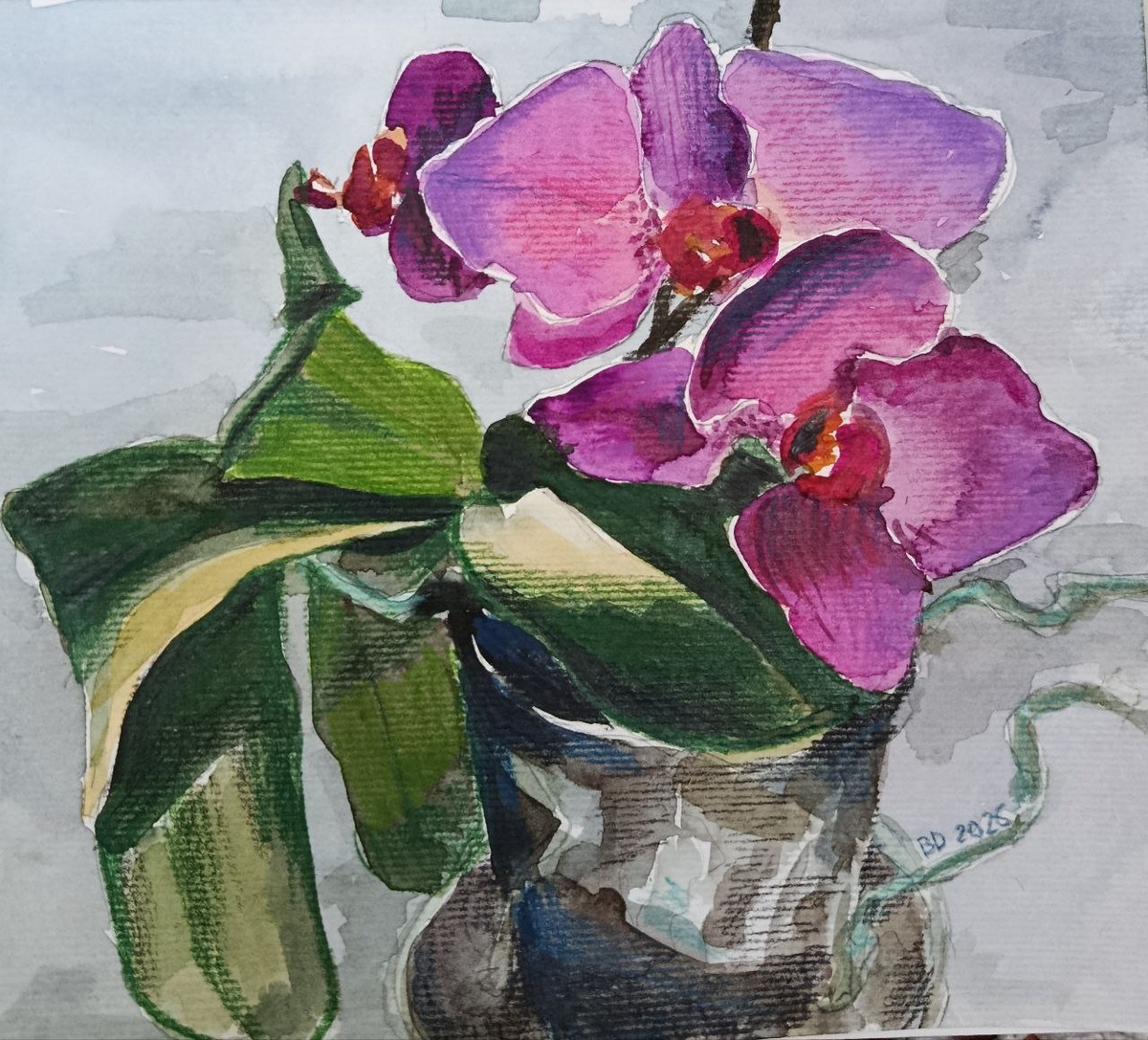 Всё та же новогодняя орхидея продолжает радовать своим цветением