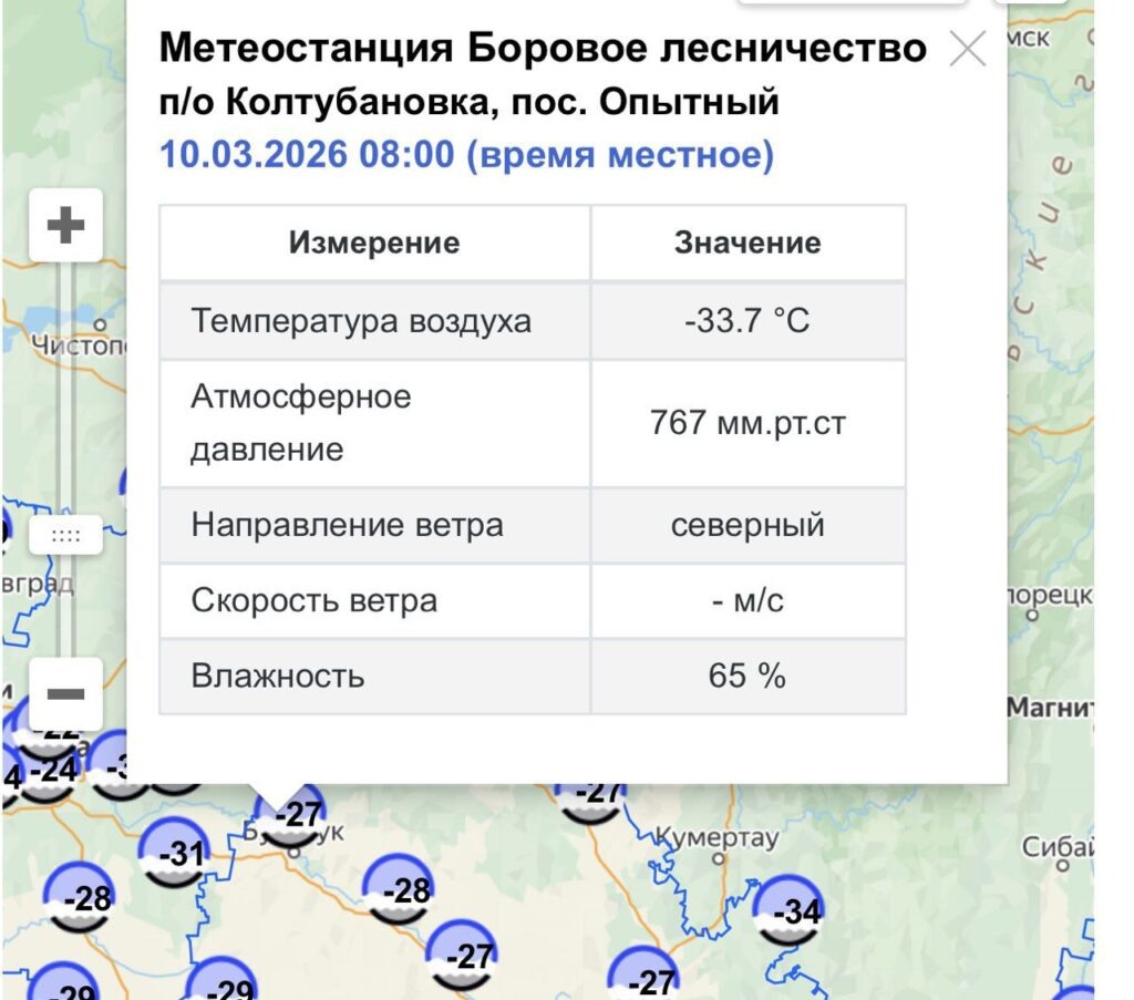 Термометр метеостанции в Боровом лесничестве утром, 10 марта, показал почти -34 градуса. Об этом сообщили в телеграм-канале национального парка. Видимо, зима решила дать финальный аккорд в Бузулукском бору, предположили госинспекторы. По прогнозами синоптиков, морозы начнут отступать уже завтра. Так что к выходным в нацпарке должна установиться вполне комфортная погода. Установится околонулевая температура. А в начале следующей недели солнышко разогреет воздух до + 4, +5 градусов. Фото: тгк «Бузулукский бор» 12+
