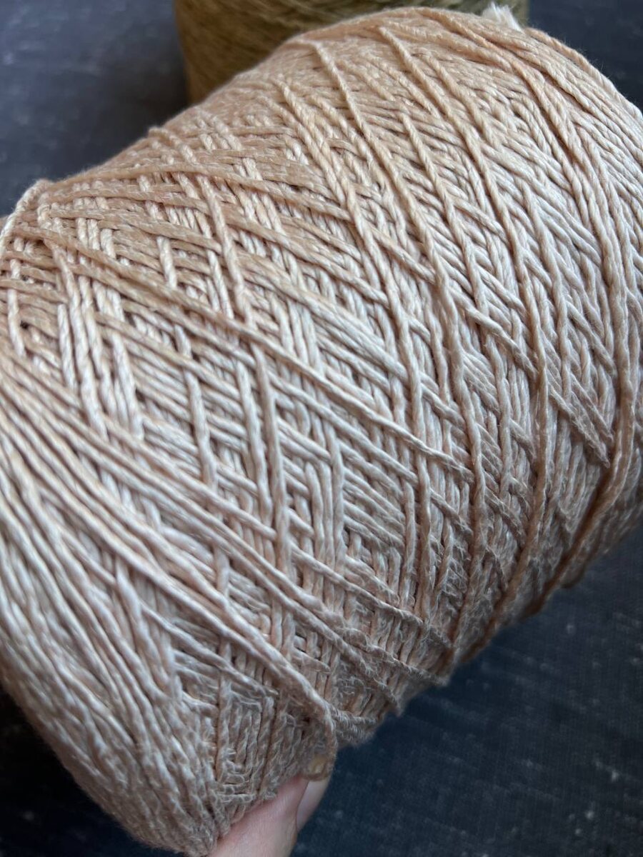 Италия IDAHO Лен по внешнему виду напоминающий шелк, а тактильно мягкий как хлопок. Удивительная пряжа. 180 м Бобинами без отмота 2200₽/кг. Бобины от 0,7 до 1,0 кг примерно Цвет крем-пудра 18 бобин