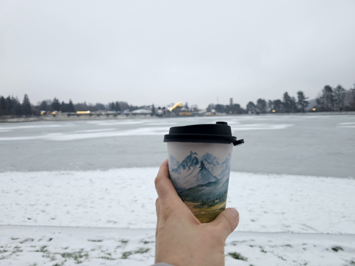 Первое место, куда я забежала - питьевая галерея. Я так соскучилась по нарзанчику. К слову, в Нальчике самая вкусная водичка! Пью ее с удовольствием. После приёма полезной воды, иду принимать не очень полезную. Не могу я жить без кофе, особенно на прогулке. А еще я обожаю красивые тематические стаканчики. Я их собираю во всех городах, где бываю и везу домой. Вот такое у меня увлечение. Но эти стаканчики обязательно должны быть красивыми. В этот раз мне тоже повезло: мне налили капучино как раз в такой стаканчик.