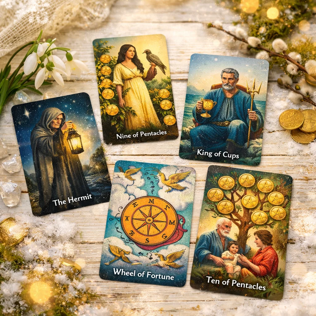 Спасибо каждому за лайки, подписки, комментарии, донаты! 🙏❤️ Вы вдохновляете меня создавать новые расклады и делиться важными посланиями. Пусть всё добро возвращается к вам сторицей! 💖 Девочки, этот расклад про состояние, которое многие женщины переживают тихо и почти никому не признаются. Когда снаружи жизнь вроде бы идёт своим чередом — работа, дела, привычный ритм — а внутри есть ощущение паузы. Как будто судьба где-то задержалась и не спешит открывать следующую страницу. Иногда кажется, что одиночество стало нормой. Что сильная женщина должна справляться сама. Но таро в таких ситуациях показывает очень важную вещь: периоды одиночества редко бывают случайными. Чаще всего это время подготовки. Карты сегодняшнего расклада: Отшельник, Девятка Пентаклей, Король Кубков, Колесо Фортуны, Десятка Пентаклей. Отшельник показывает этап, через который вы уже прошли. Это период внутреннего взросления. Когда человек учится быть с собой честным, понимать свои границы и перестаёт соглашаться на о