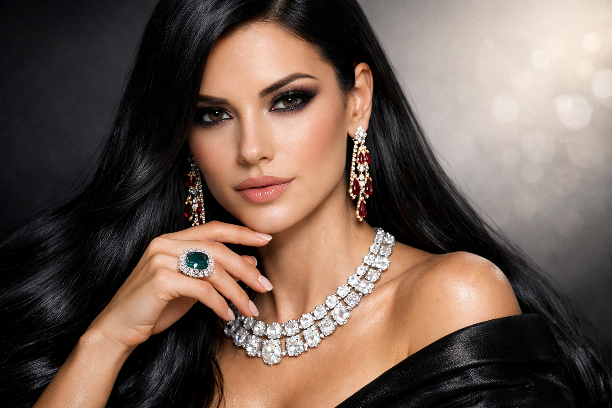 Цвет волос влияет на то, как выглядят украшения на человеке. Темные волосы создают выразительный контраст, поэтому многие камни и металлы смотрятся на брюнетках особенно ярко. При выборе украшений важно учитывать не только оттенок волос, но и тон кожи, цвет глаз и общий стиль образа. Условно брюнеток можно разделить на два типа: с теплым и холодным оттенком волос. У теплого типа волосы имеют каштановый, медный или рыжеватый отлив. У холодного — более темный, иногда иссиня-черный или пепельный оттенок. От этого во многом зависит, какие цвета камней и металлов будут смотреться гармоничнее. Темные волосы позволяют носить насыщенные и контрастные украшения. Если светловолосым девушкам чаще подходят пастельные оттенки, то брюнетки могут смело выбирать более яркие решения. Насыщенные камни и выразительные формы не теряются на фоне темных волос. Важно учитывать и форму украшений. Чаще всего брюнеткам подходят: Для повседневного стиля можно выбирать и лаконичные изделия. Небольшие серьги с кам