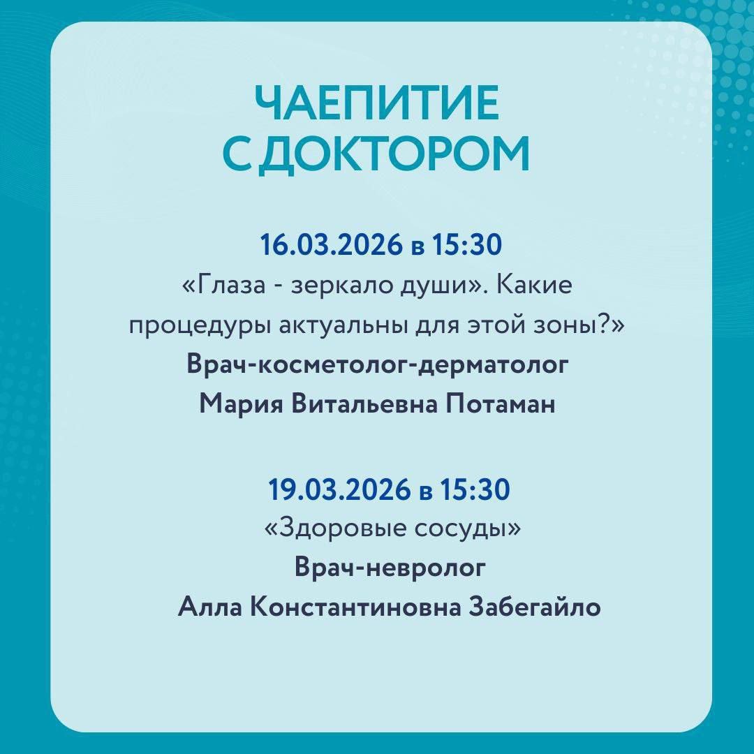 Это разговор, понимание и ответы на ваши вопросы. «Чаепитие с доктором» — это открытые встречи в кофейне ДиЛУЧ, где можно обсудить важные темы в спокойной, неформальной обстановке. Что вас ждёт: ✔ живой диалог со специалистом ✔ разбор частых вопросов ✔ практические рекомендации ✔ возможность задать личный вопрос Это пространство, где медицина становится ближе. 📍 ул. Калинина, 23 Вход свободный.