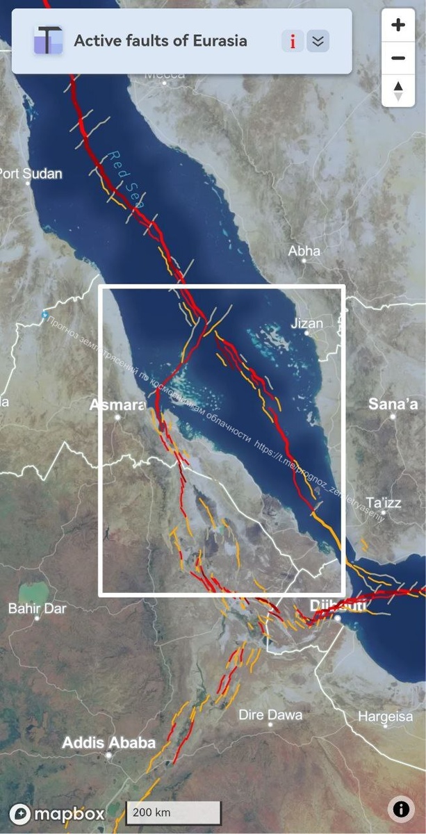 В течение последних 3 дней отмечается дегазация уровня М6+ на стыке Аравийской и Африканской плиты в районе Красного моря у Эритреи/Эфиопии.