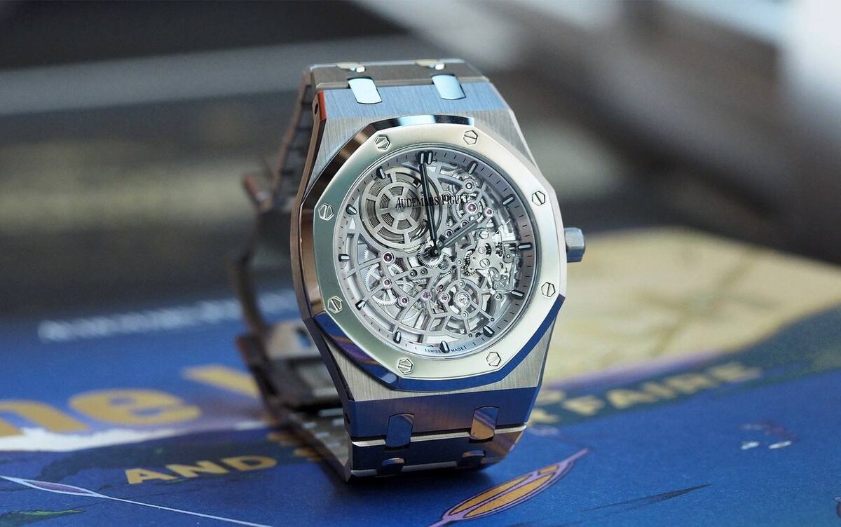 Royal Oak не терпит суеты. Любая правка в узнаваемом силуэте считывается мгновенно: пропорции здесь возведены в абсолют. Потому Audemars Piguet действует не как реформатор, а как инженер. Новая версия Jumbo Extra-Thin Openworked — это не смена ДНК, а работа с плотностью материалов и прозрачностью механизма. Модель 16204XT строится на двух осях: экстремальное облегчение корпуса и максимальная демонстрация калибра. Диаметр 39 мм. Профиль ультратонкий. Основа — титан. На руке это ощущается сразу: часы теряют инерцию тяжелого металла, оставаясь при этом тактильно холодными и плотными. Ключевое отличие — безель. Здесь использован BMG (Bulk Metallic Glass). Это не керамика и не сталь. Металлическое стекло обладает аморфной структурой, что дает аномальную твердость и устойчивость к микроцарапинам. В паре с матовым титаном полированный BMG работает как акцент: геометрия «осьмиугольника» сохранена, но физика материала изменена. Циферблат устранен. Вместо него — архитектура калибра 7124. Это баз
