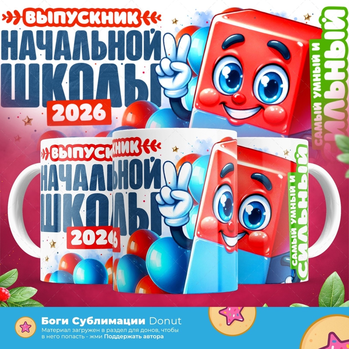 Макет на кружку Выпускник начальной школы 2026 5. Чтобы скачать бесплатно, поддержите нас через VK Donut