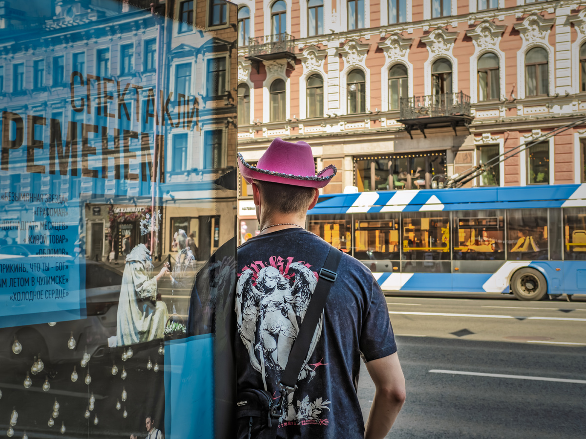 Питер в День Военно-Морского Флота 2025 года — это какой-то запредельный коктейль из эпох и стилей. Представьте: вы стоите на остановке, а мимо проходит парень в ярко-розовой ковбойской шляпе и футболке с ангелом. Следом за ним — моряк в кипельно-белой парадной форме, чеканящий шаг. И никто даже не оборачивается, потому что в этом городе такая эклектика — абсолютная норма. На улице стабильные плюс тридцать. Город буквально плавится под солнцем. Девушка в коротких шортах прислонилась к раскаленному фонарному столбу, пытаясь поймать хотя бы узкую полоску тени. Вокруг шум, движение, бесконечный поток машин, а она словно замерла в этом мареве. В такие моменты Петербург напоминает южный портовый город, где величие имперской столицы смешивается с расслабленным летним вайбом. Невский проспект сегодня гудит как разворошенный улей. Синие городские автобусы, огромные красные двухэтажники для туристов и бесконечные толпы людей в тельняшках. Воздух дрожит от жара, запаха бензина и предвкушения пра