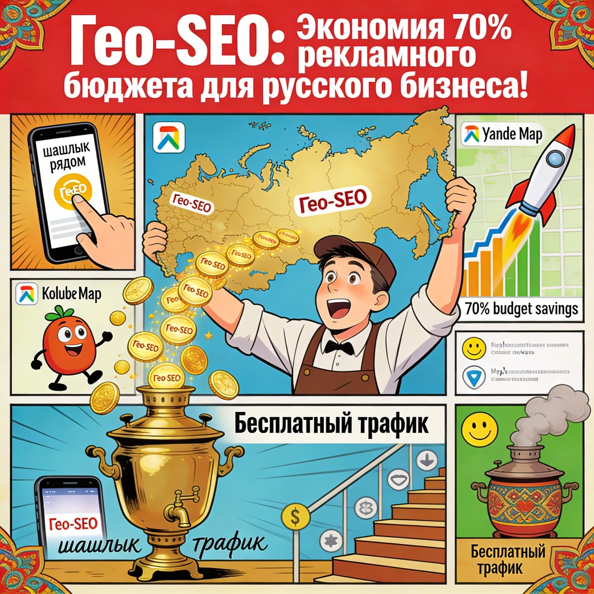 Знаете, как владелец кафе в Екатеринбурге сэкономить 70% на рекламе? Гео-SEO — это не тренд, а золотая жила для локального бизнеса в России
